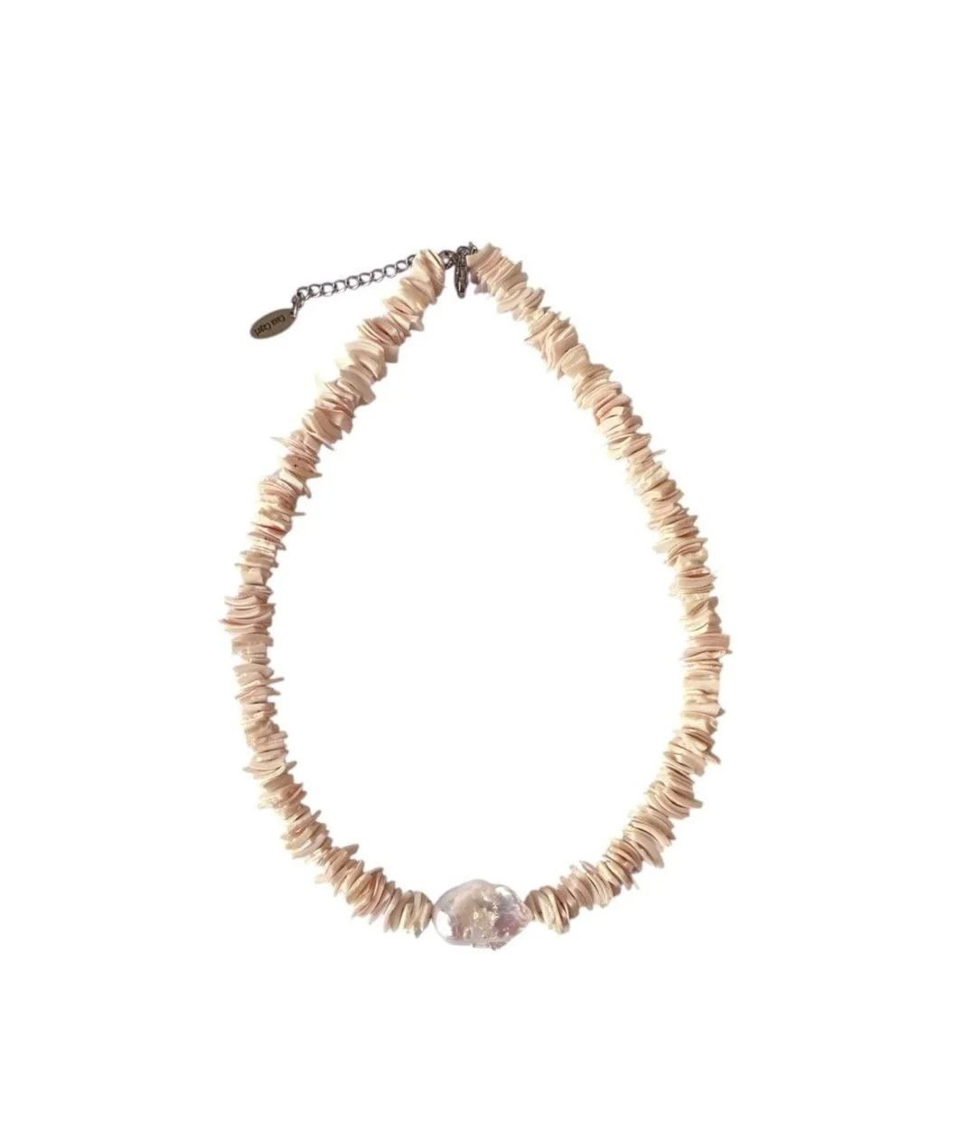 Threaded on a bright orange cord, it captures the playful vibrancy of summer. At its heart sits a luminous baroque pearl, one-of-a-kind in shape and shine, symbolising individuality and natural beauty.